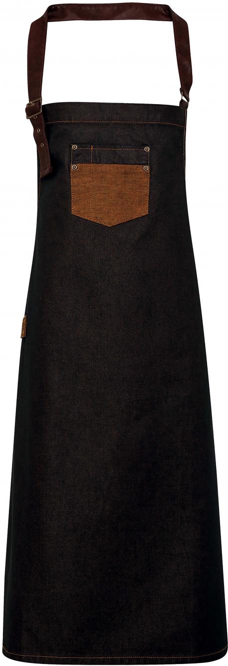 Der 100%ige Baumwoll-Latzschürze mit Acryl-Finish bietet einen Vintage- und authentischen Look dank ihrer langlebigen Öl-Wirkung. Die Farbe wird durch gefärbte Fäden erzielt. Kontrastierte Einsätze und Details aus Kunstleder verleihen dieser Schürze einen trendigen Look, der die Profis und Kunden begeistert. Die Befestigungsbänder sind aus Kunstleder und der Halsbefestigungsriemen ist dank einer Schlaufe verstellbar. Maße: H 86 cm x B 72 cm.