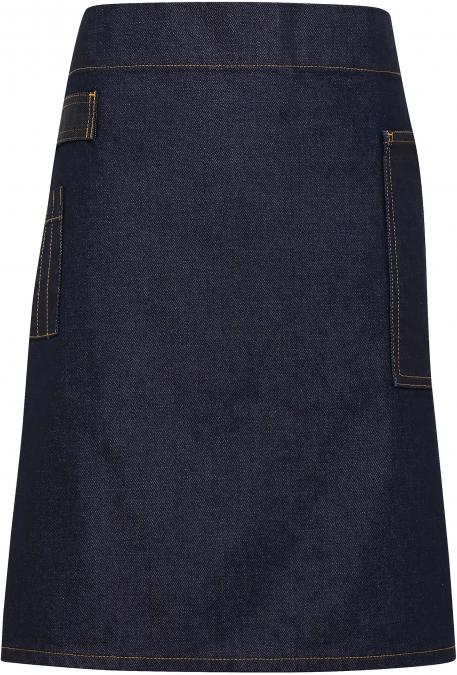 Diese 100% Baumwoll-Denim-Schürze verfügt über eine langlebige Acryl-Finish, die ihr ein robustes und langlebiges Aussehen sowie einen industriellen Charme verleiht, der sich perfekt in die Atmosphäre vieler Restaurants einfügt. Sein mittellanges Design und die Jeans-Inspiration machen es zu einer modischen Schürze. Eine große gefütterte Tasche, ein Nähfinish und extra breite Taschen mit Überwendlingsdetails und Nieten vervollständigen das Aussehen. Kontrastierte Schnüre und ein Metallösen-Befestigungssystem sowie Stoffdetails wie die gefütterte Tasche und der Handtuchhalter machen es zu einer praktischen und eleganten Schürze. Abmessungen: H 70 cm x L 50 cm.